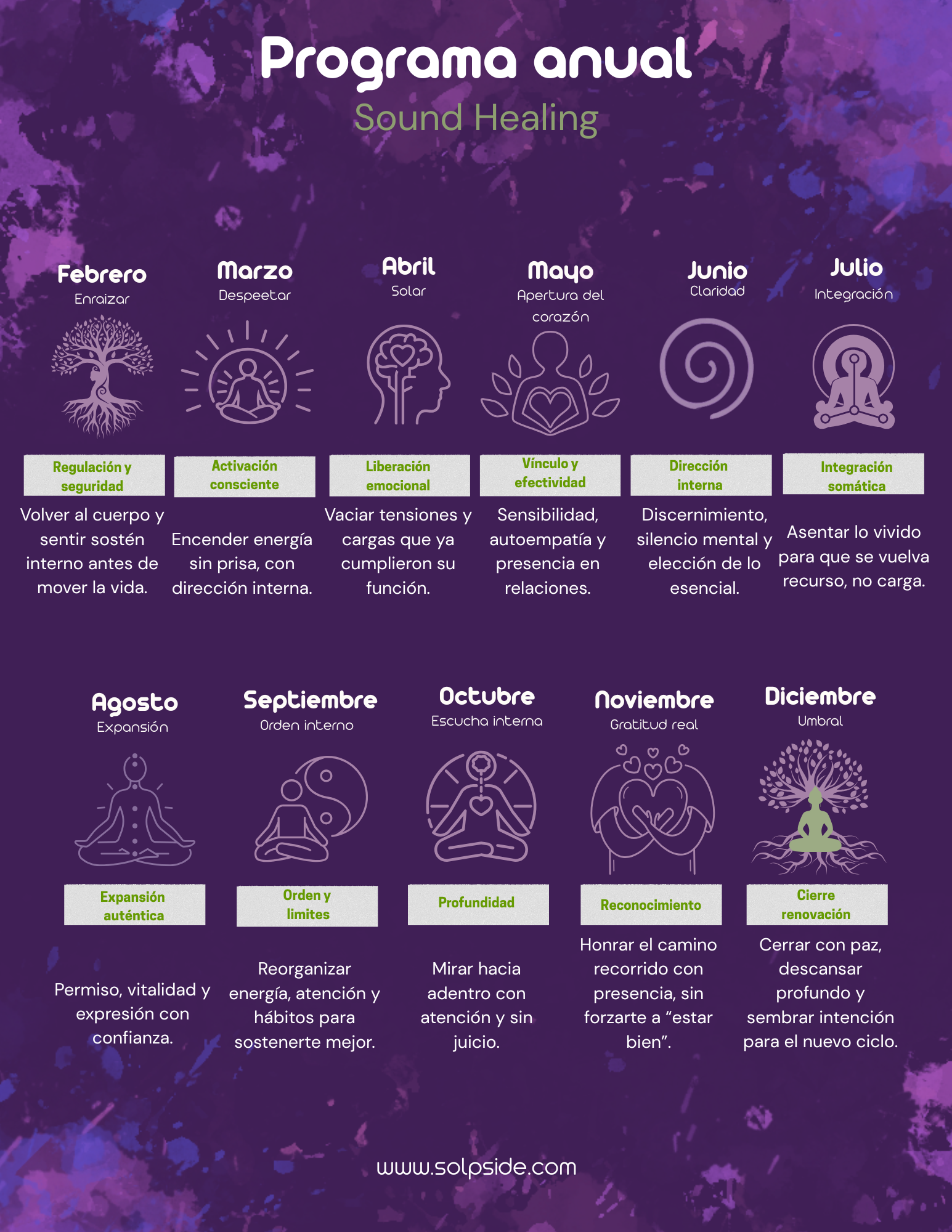 Los encuentros mensuales de Sound Healing en SOLPSIDE son experiencias inmersivas diseñadas para quienes buscan algo más que relajación: un espacio para escuchar(se) con profundidad.
